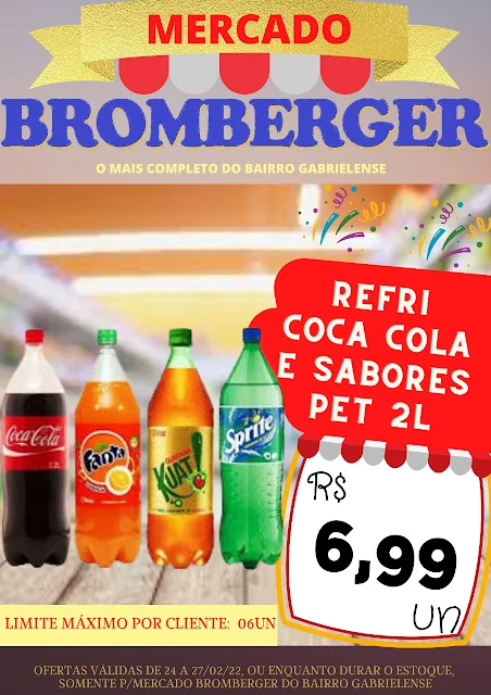 Confira as ofertas válidas até 27 de fevereiro ou enquanto durarem os estoques, somente no Mercado Bromberger, do Bairro Gabrielense.